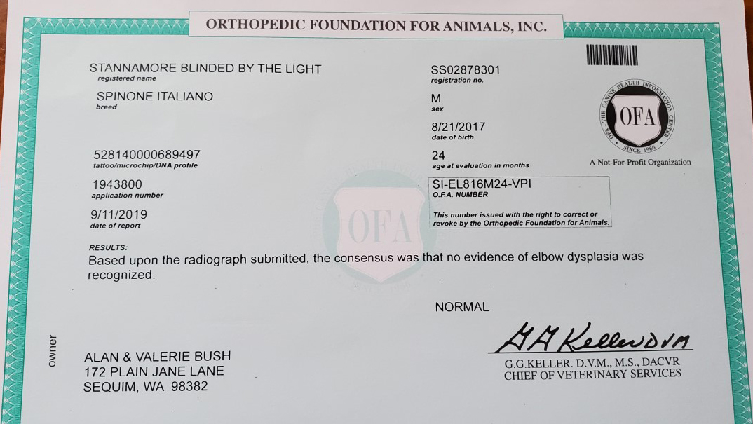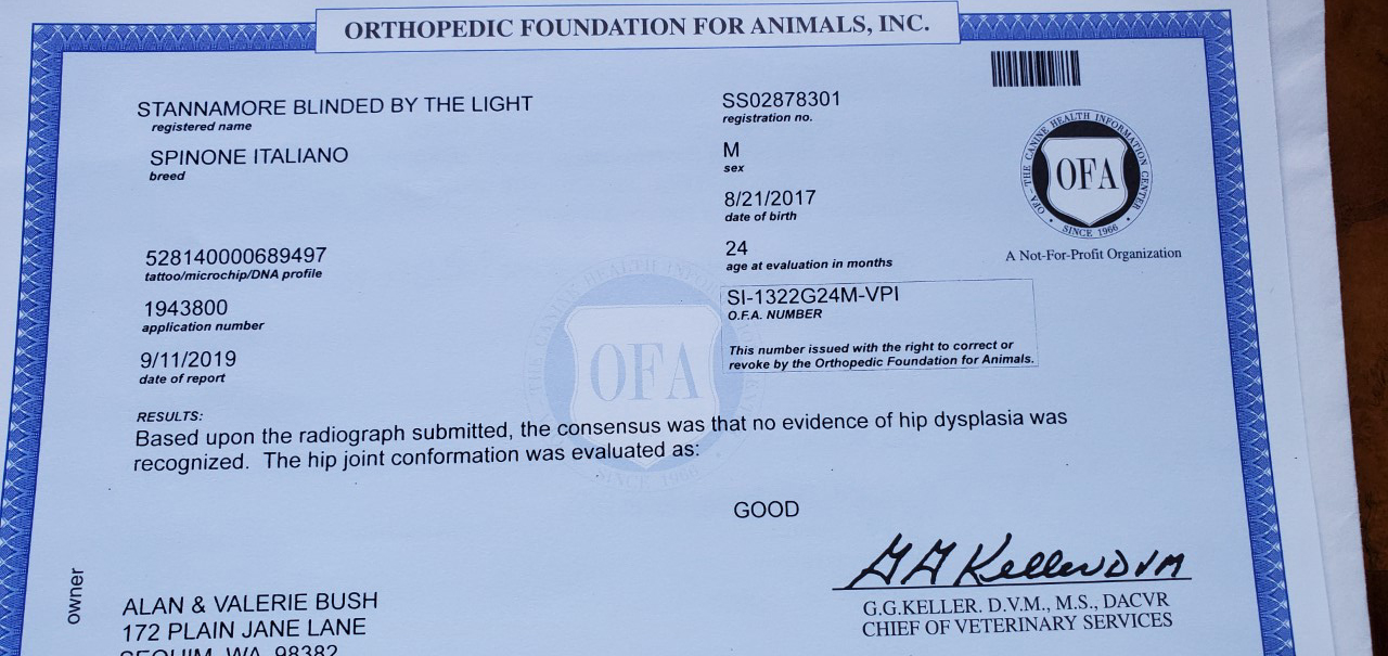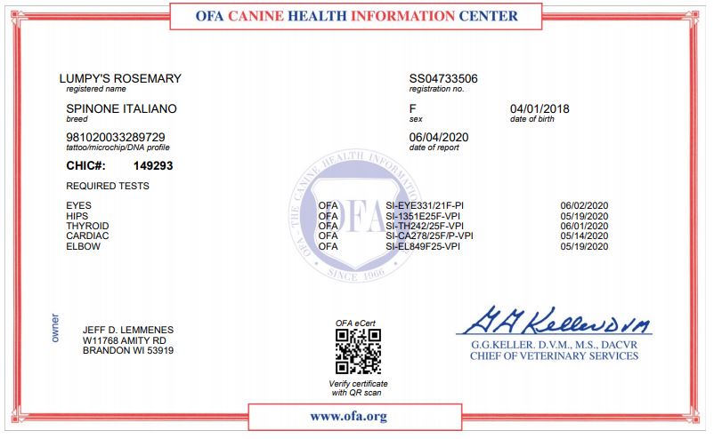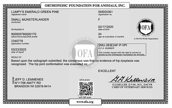 CH Whiskey Hills n' Lumpy's Rousseau JH NA (top, left first) Pedigree – OFA Health Certifications