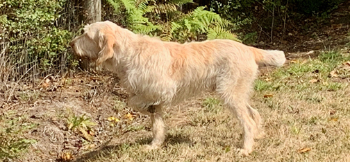 retriever; in addition, he’s been trained to retrieve into the heel position,