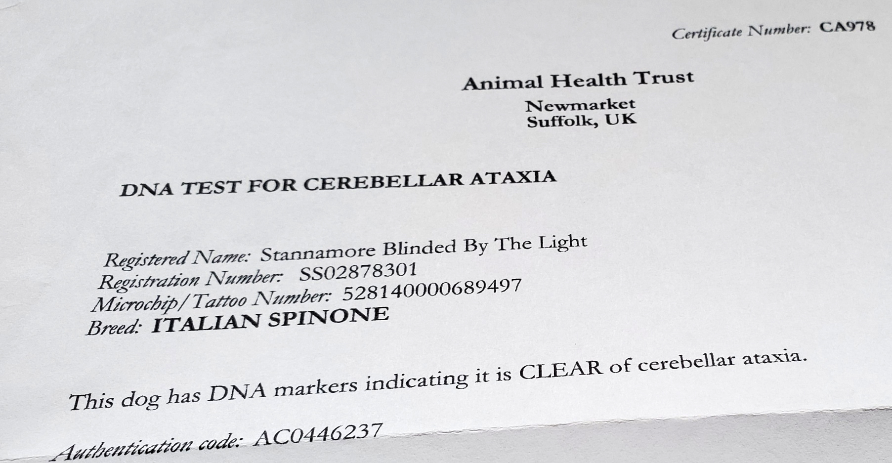 her pedigree. All puppies receive age appropriate vaccinations and worming, along with a certified vet inspection.