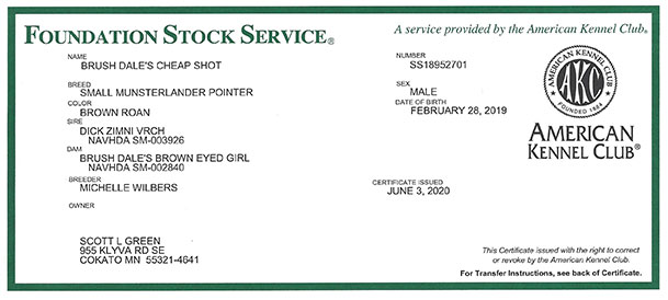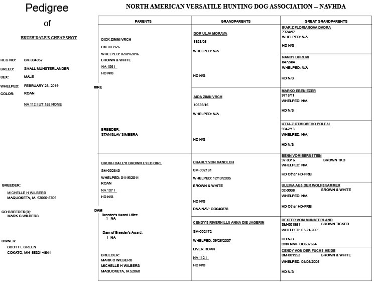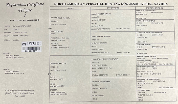 Pedigree – NAVHDA NA - Hips Excellent - Pine